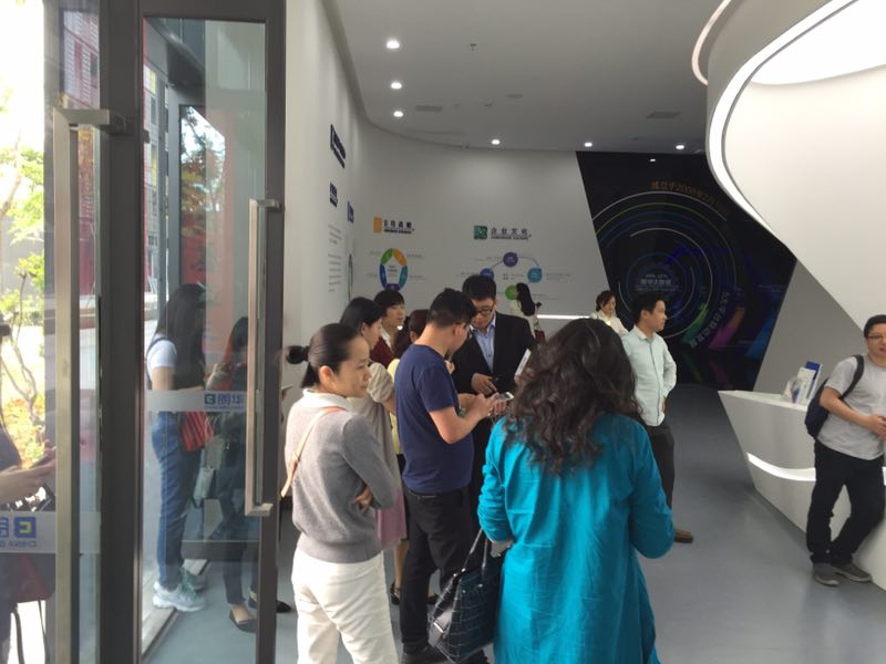(参观企业学员在会议室了解朗华O2O项目)