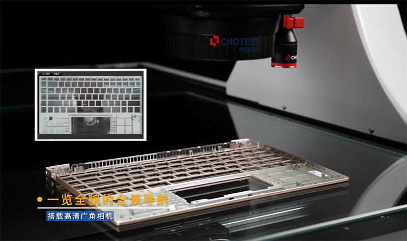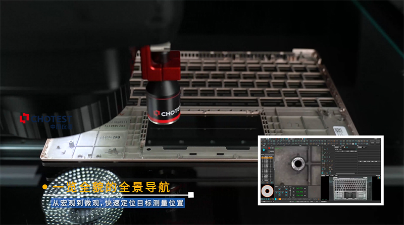 影像仪产品内置高精度光学电动双倍镜头,不仅可以清晰、准确地观测微小的产品特征,还满足高精度的产品尺寸测量需求。但是,对初学者而言,他们将面临视野小、难以快速定位产品特征的问题,从而影响产品的测量效率。Novator系列影像仪在镜头端配备高清广角镜头,可以清晰地观察产品的整体形状,支持实时图像和图片两种成像导航方式,可以更好地观察整个样品,实现产品的快速定位和精确测量,提高测量效率。