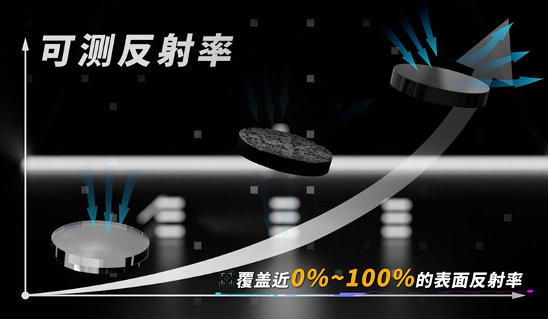 全透明表面、漫反射表面、镜面反射表面,可测反射率:覆盖近0%~100%的表面反射率。